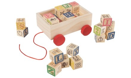 Hey! Play! ABC and 123 Wooden Blocks Set with Pull Cart Box (31-Piece)