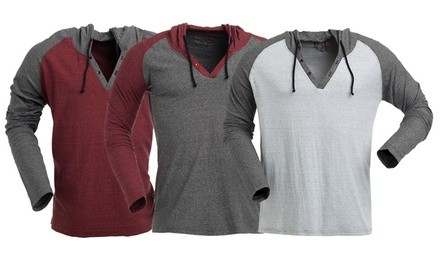Finest Quality Group Men's Two-Tone V-Neck Pullover Henley Hoodie