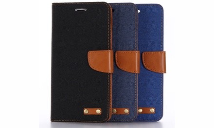Waloo Canvas Folio Case with Leather Interior for iPhone 7 or 7 Plus