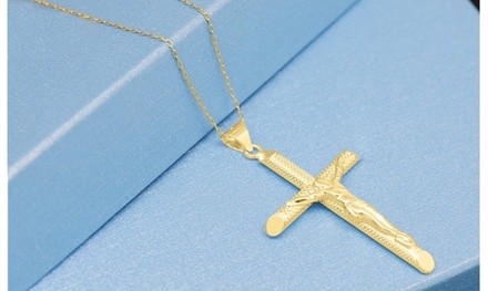 Italian Diamond Cut Crucifix Cross Necklace In 18K Yellow Gold