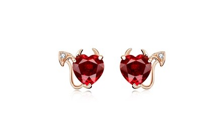 Ruby Stud Devil Earrings in 18K Gold Plating