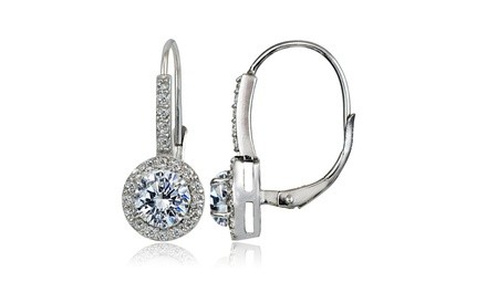 Sterling Silver Created White Sapphire Round Leverback Earrings