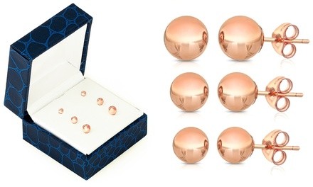 14K Solid Rose Gold Ball Stud Earrings in Boxed Set