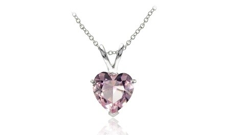 Sterling Silver Simulated Pink Tourmaline 7mm Heart Pendant Necklace